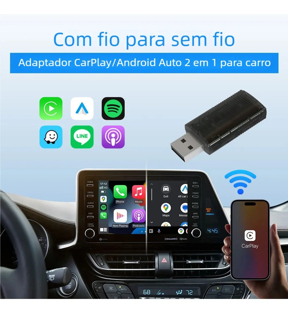 📶 Ativa o CarPlay e o Android Auto sem fio.