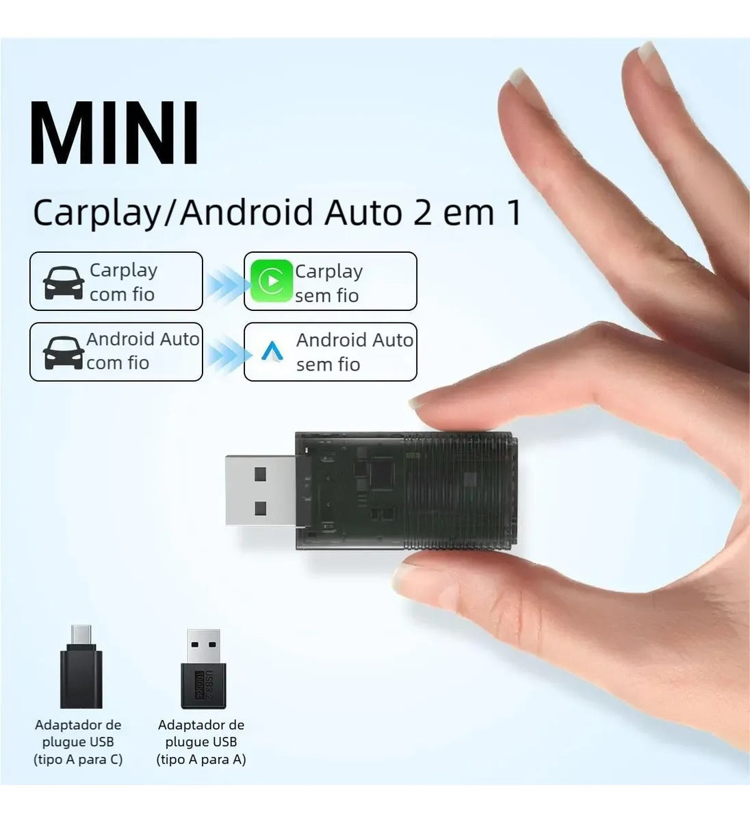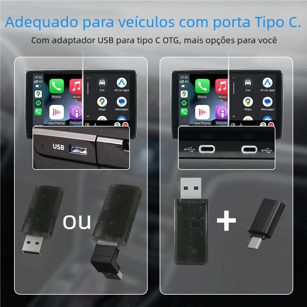 Adaptador sem fio para carro compatível com CarPlay e Android Auto