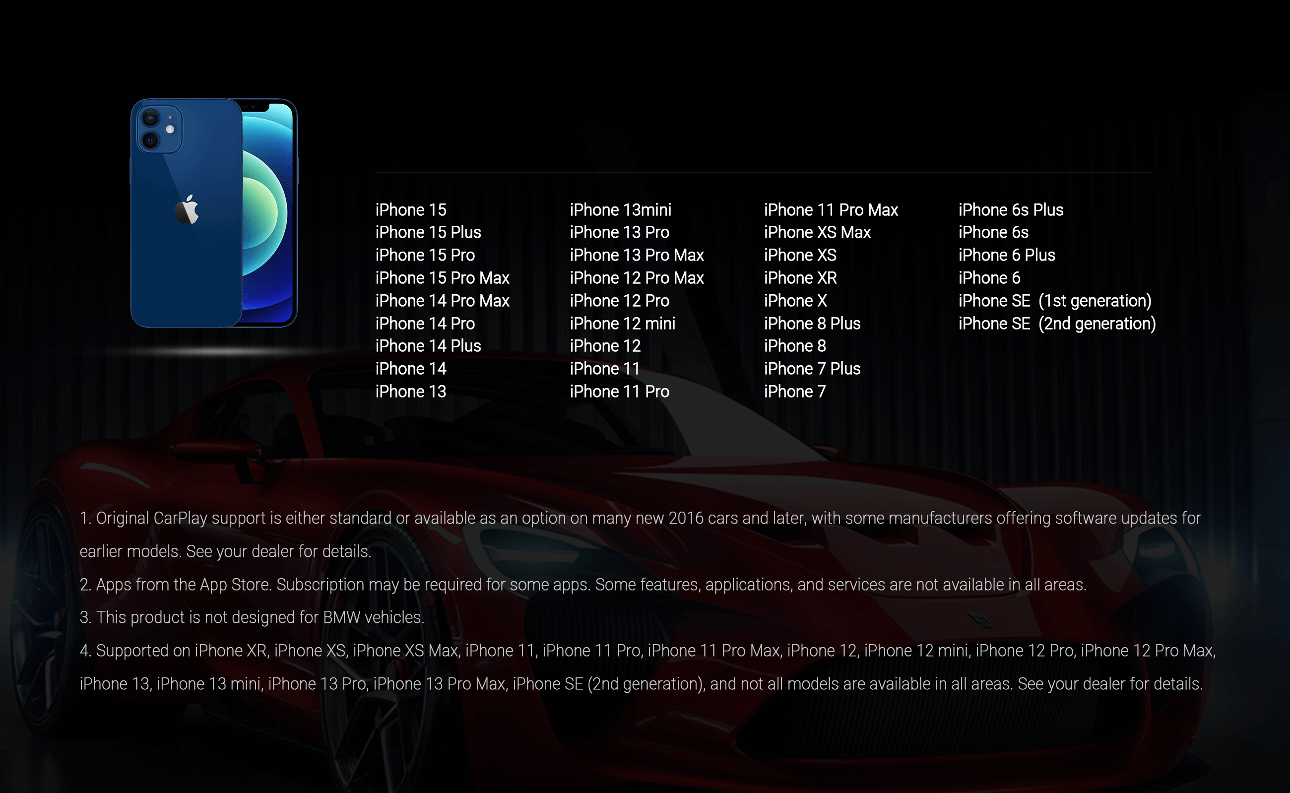 Only for vehicles or motorcycle that have factory wired CarPlay